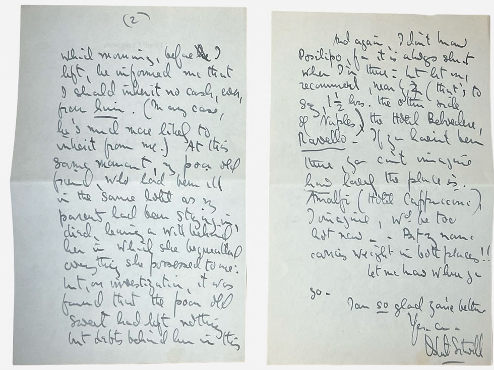 Two autograph signed letters written by Osbert Sitwell from 1933/34