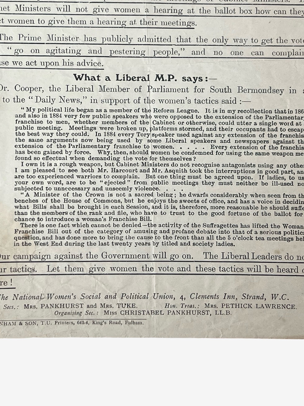 Why Women Protest at Liberal Meetings: a WSPU Broadside c1909-1910